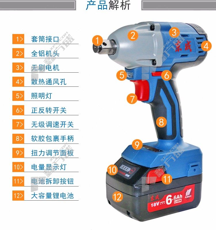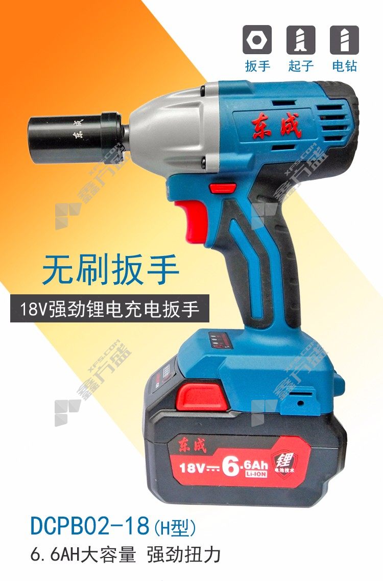 商品名称: 东成 DCPB02-18H 单电无刷充电式冲击扳手 DCPB02-18H 18V 6.0Ah 单电 无刷 00001140004