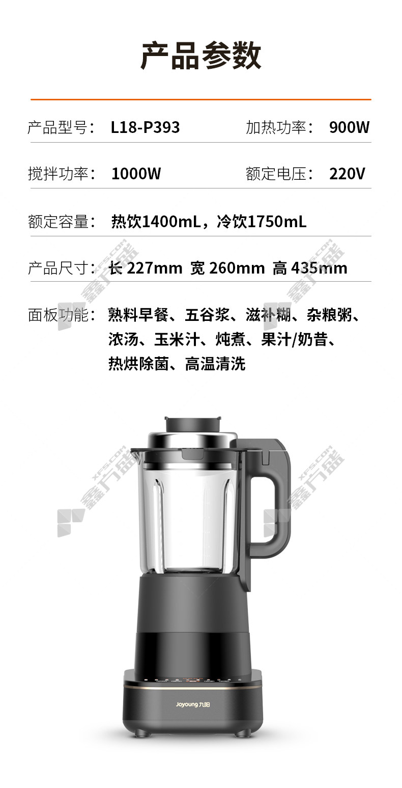商品名称: 九阳 1.8L低音预约加热破壁机 L18-P393