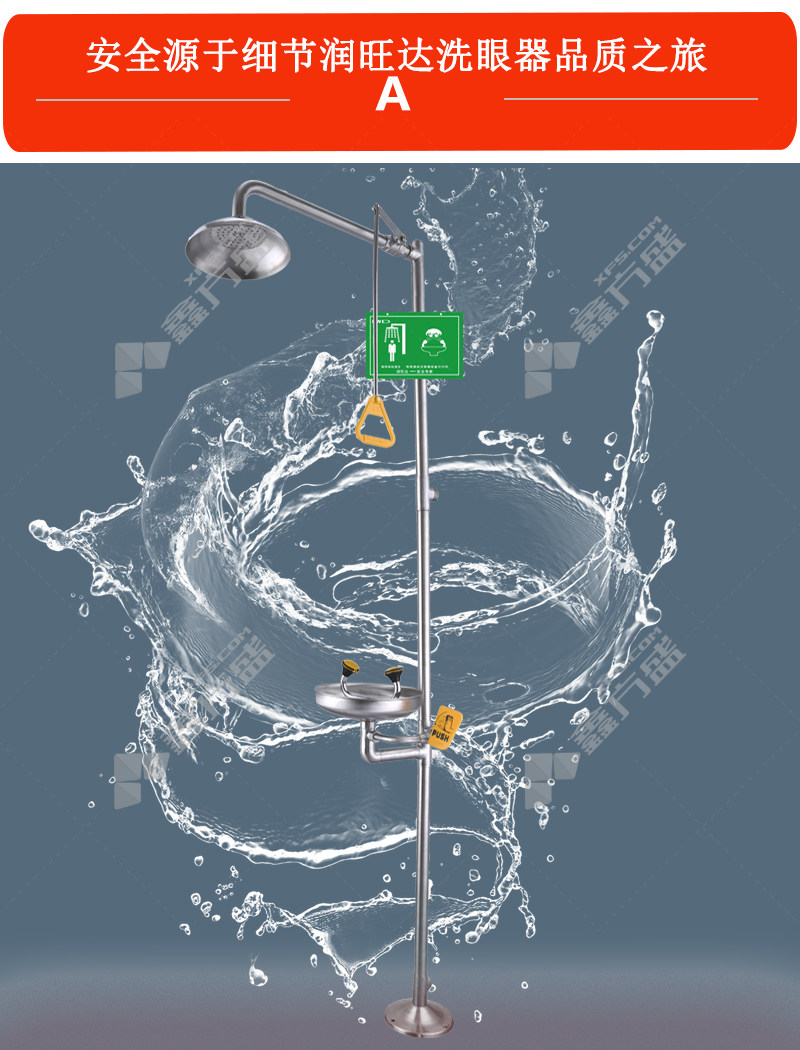 商品名称: 润旺达 紧急冲淋洗眼器 两节 抛光 WJH1358
