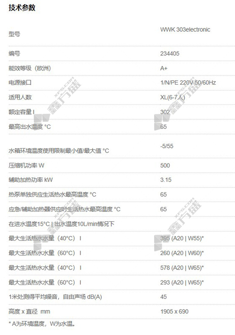 商品名称: 斯宝亚创 WWK303 热泵热水器 302L A+ 220V WWK303