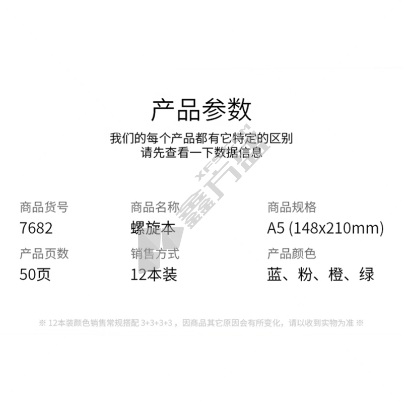 商品名称: 得力螺旋本螺旋本笔记本 7682 A5/50页 混色