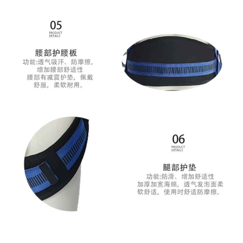 商品名称: 海沨特 含腰垫肩背垫 豪华型全身式区域限制安全带 蓝色 2m单大钩连接绳 HFTZ-022